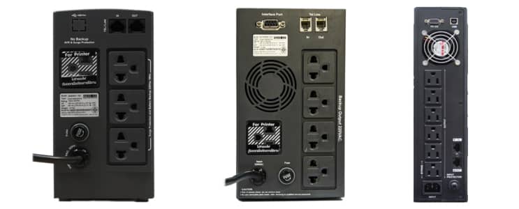หลังจากชาร์จแบตเครื่องสำรองไฟฟ้าเสร็จเรียบร้อยก็ได้เวลาใช้งานแล้ว คุณจะต้องดูที่ด้านหลังเครื่องสำรองไฟฟ้า (UPS) ซึ่งจะมีเต้ารับอยู่หลายช่อง คุณอาจสงสัยว่าแล้วต้องเสียบช่องไหนกันแน่ถึงจะใช้ไฟฟ้าสำรองได้ หลัก ๆ แล้วด้านหลังเครื่องสำรองไฟฟ้า Syndome จะมีจำนวนช่องเสียบหรือเต้ารับแตกต่างกันไปตามรุ่นและขนาดกำลังไฟฟ้า โดยเต้ารับเหล่านั้นจะแบ่งการใช้งานเป็น 2 ประเภท