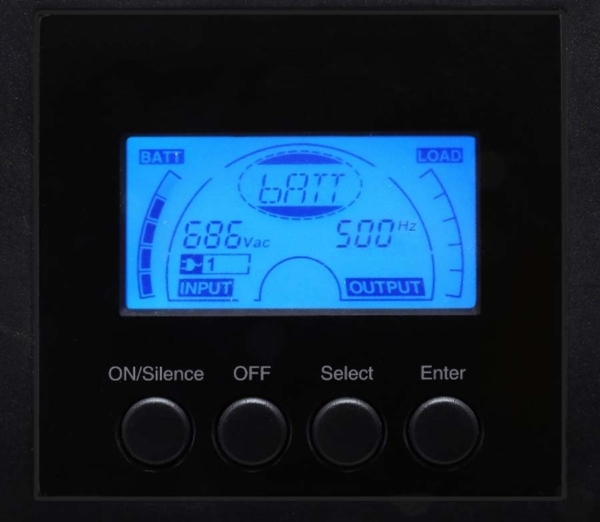 หากว่าแหล่งจ่ายพลังงานไฟฟ้าหลักเกิดขัดข้อง ไม่ว่าจะเป็นไฟฟ้าดับ ไฟฟ้าตก ไฟ้กระชาก เครื่องสำรองไฟฟ้า (UPS) จะดึงเอาไฟฟ้าสำรองที่อยู่ในแบตเตอรี่ออกมาใช้งาน เครื่องจะเข้าสู่โหมดการใช้ไฟฟ้าจากแบตเตอรี่ (Battery mode) ทันที และหน้าจอ LCD จะแสดงตัวอักษร bATT ขึ้นมาแทน