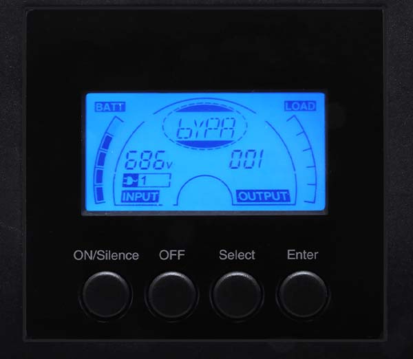 หน้าจอ LCD ของเครื่องสำรองไฟฟ้า (UPS) ที่เข้าสู่โหมด Bypass แต่ไม่มี Output